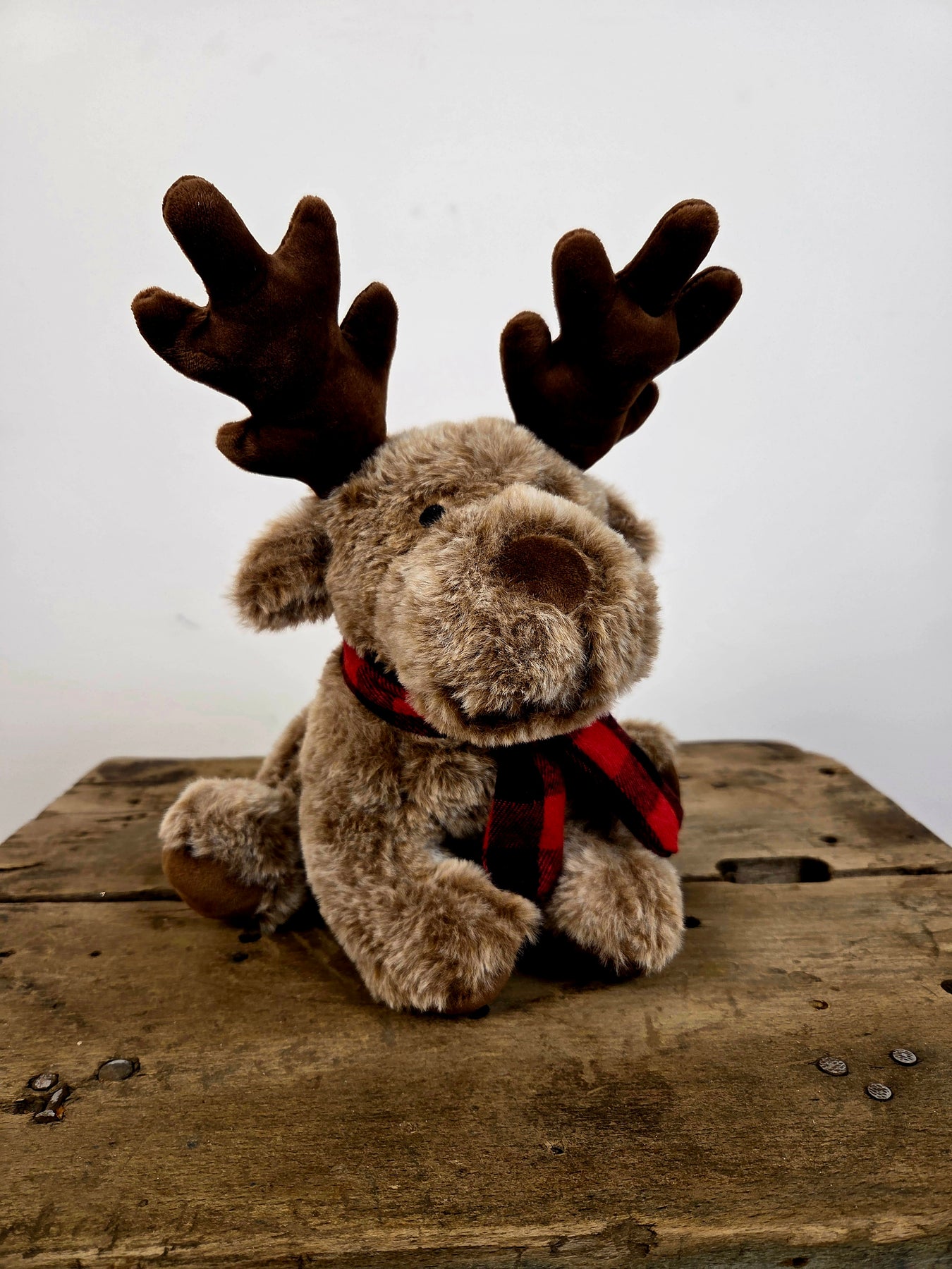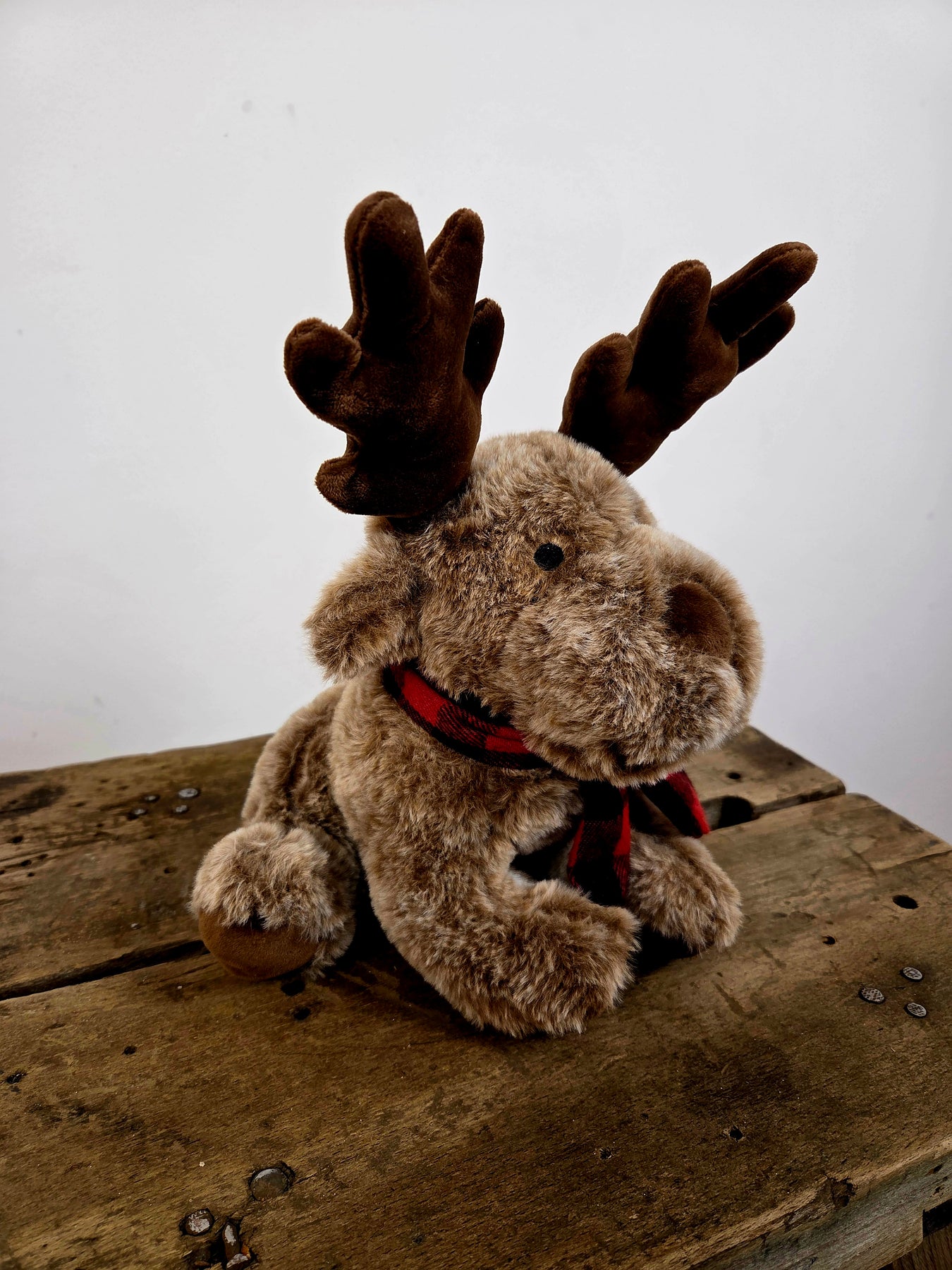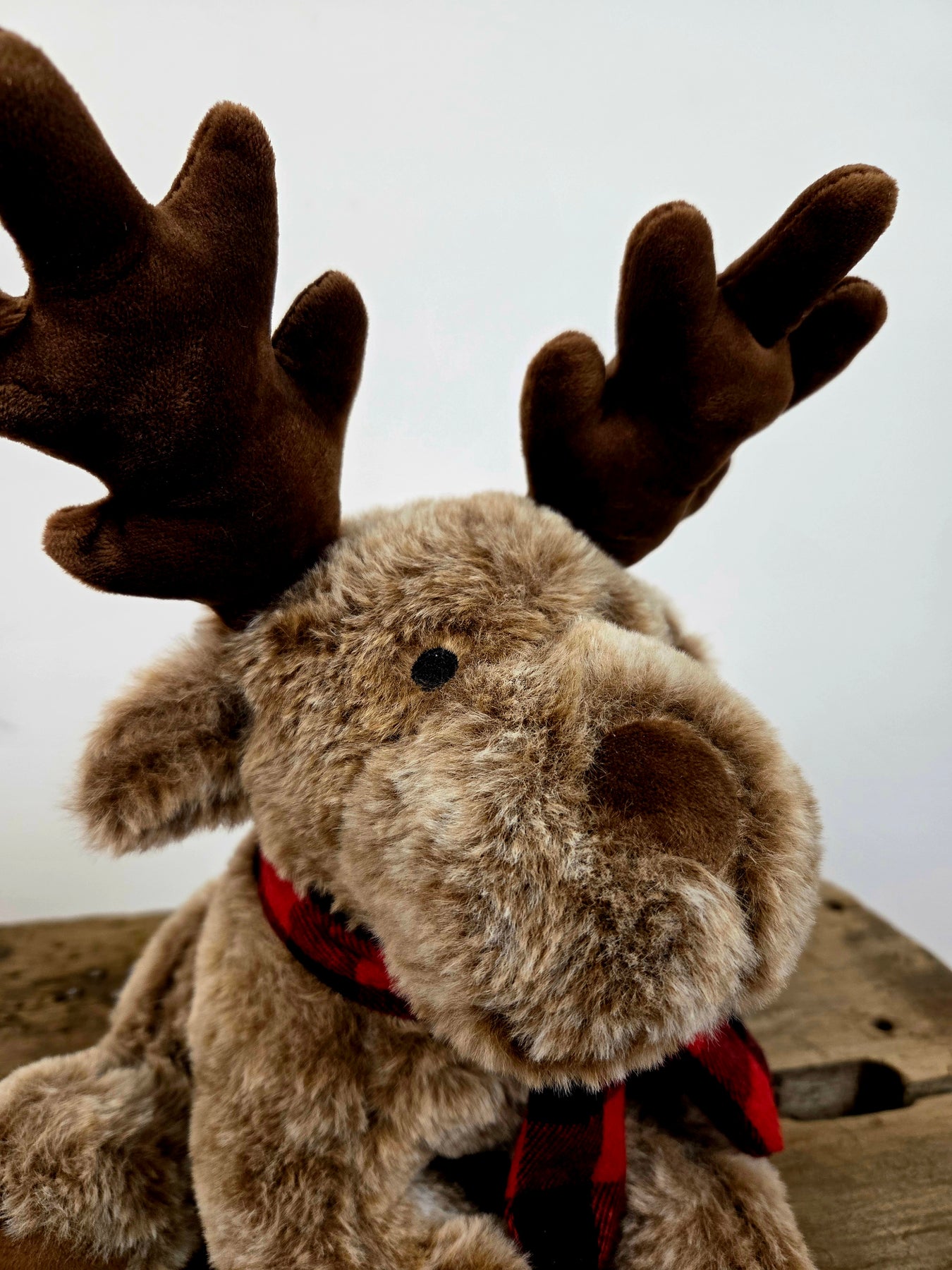 Denne kærlige juleelg er både en sød dekoration og en praktisk dørstopper, der bringer den ultimative hygge ind i dit hjem under højtiden. Med sin bløde, lysebrune plyspels, store, udtryksfulde øjne og imponerende gevir af matchende brunt stof, står den som en trofast ven fra nordens vilde natur – nu klar til at holde døren åben med sin vægt på 1 kg. Om halsen har den et klassisk rødt-flødebuf skærf, der tilføjer et touch af julestemning og varme. Med en højde på ca. 28 cm er den perfekt til at placere ved siden af juletræet, i entreen eller som en charmerende detalje på hylden. Fremstillet af høj kvalitet, blødt materiale, der er behageligt at røre ved, og med en solid bund, der sikrer stabilitet som dørstopper. Uanset om du vil skabe stemning eller have en funktionel hjælper, er denne elg en must-have, der spreder glæde og latter i familien – en tidløs julefavorit!