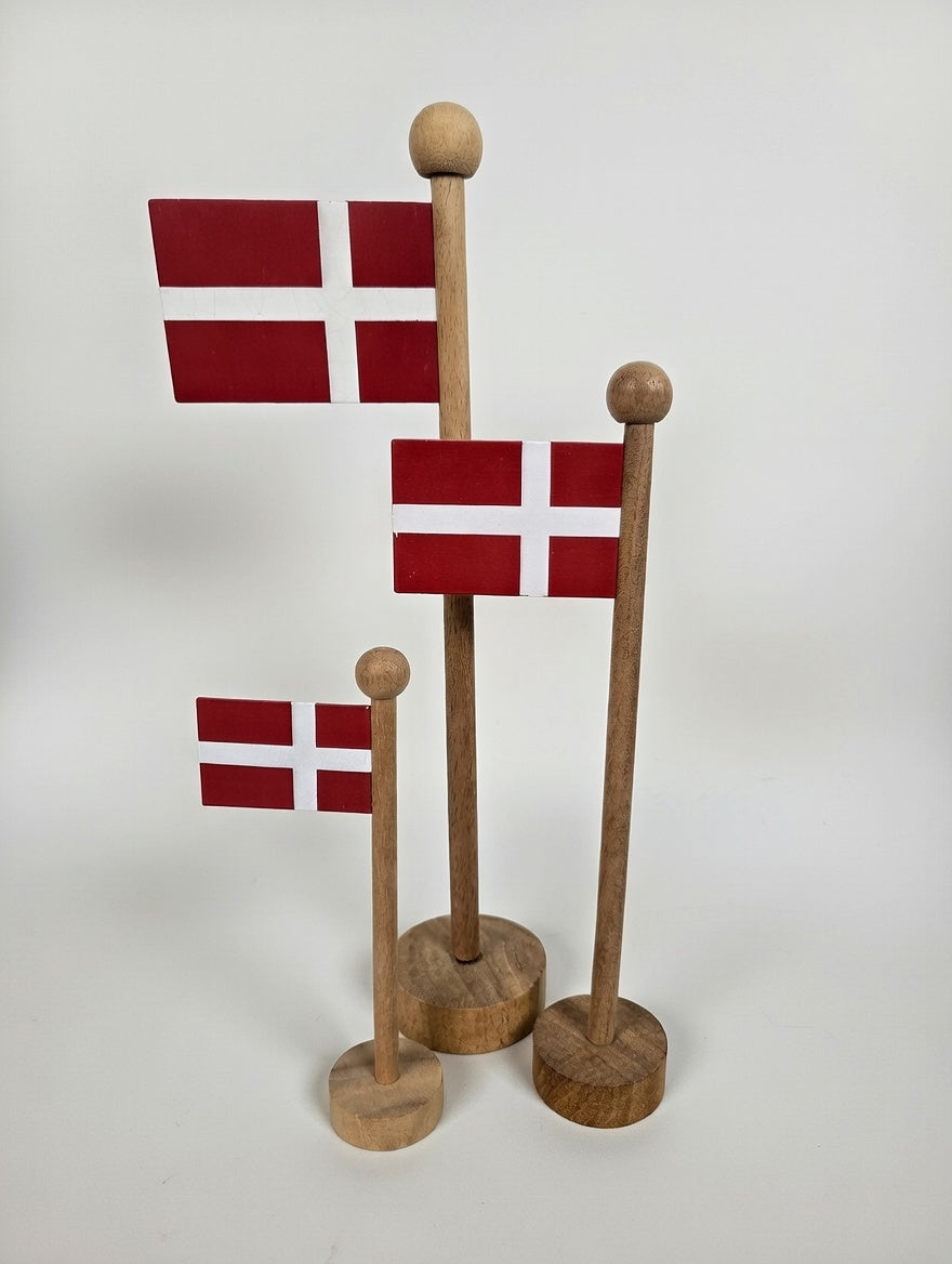 Disse små flag bringer straks feststemning til fødselsdage, konfirmationer, studentergilder, flagdage eller bare en hyggelig morgenmad. De er håndlavede med kærlighed til detaljerne og passer smukt ind i både børneværelset, det voksne hjem og den skandinaviske minimalisme. Stil dem enkeltvis eller som en trio i forskellige højder for et flot, varieret udtryk.