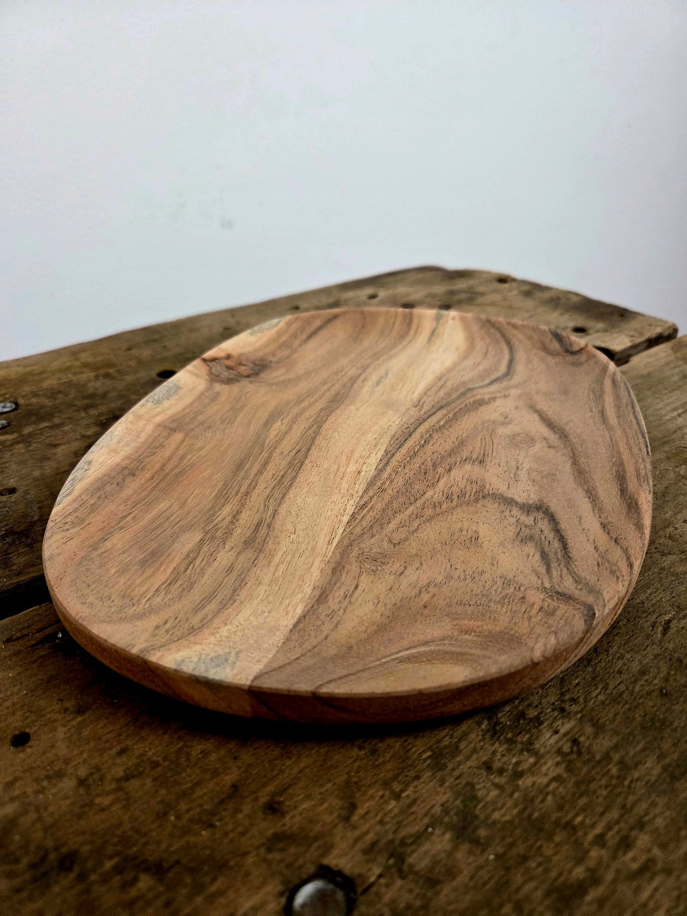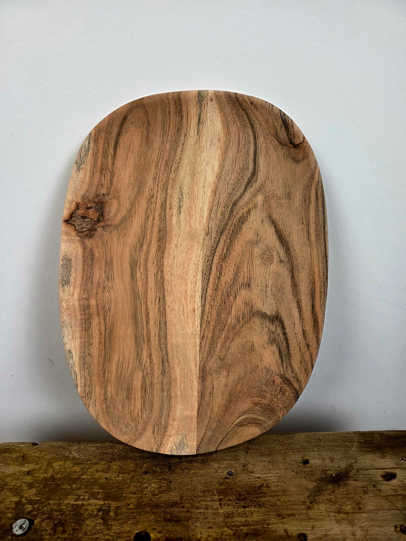 Disse smukke ovale fade i akacietræ har en flydende, organisk form og flotte naturlige årringe, der gør hver eneste en helt unik! Perfekte både som serveringsfade til maden og som dekorationsfade på bordet eller i vindueskarmen. De måler 28 x 20 cm.