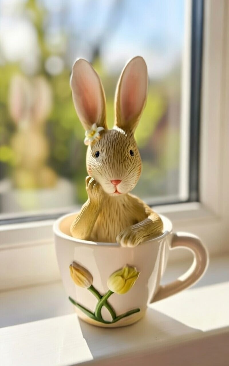 Kanin i kop – skøn og dekorativ figur (10 × 6 cm)