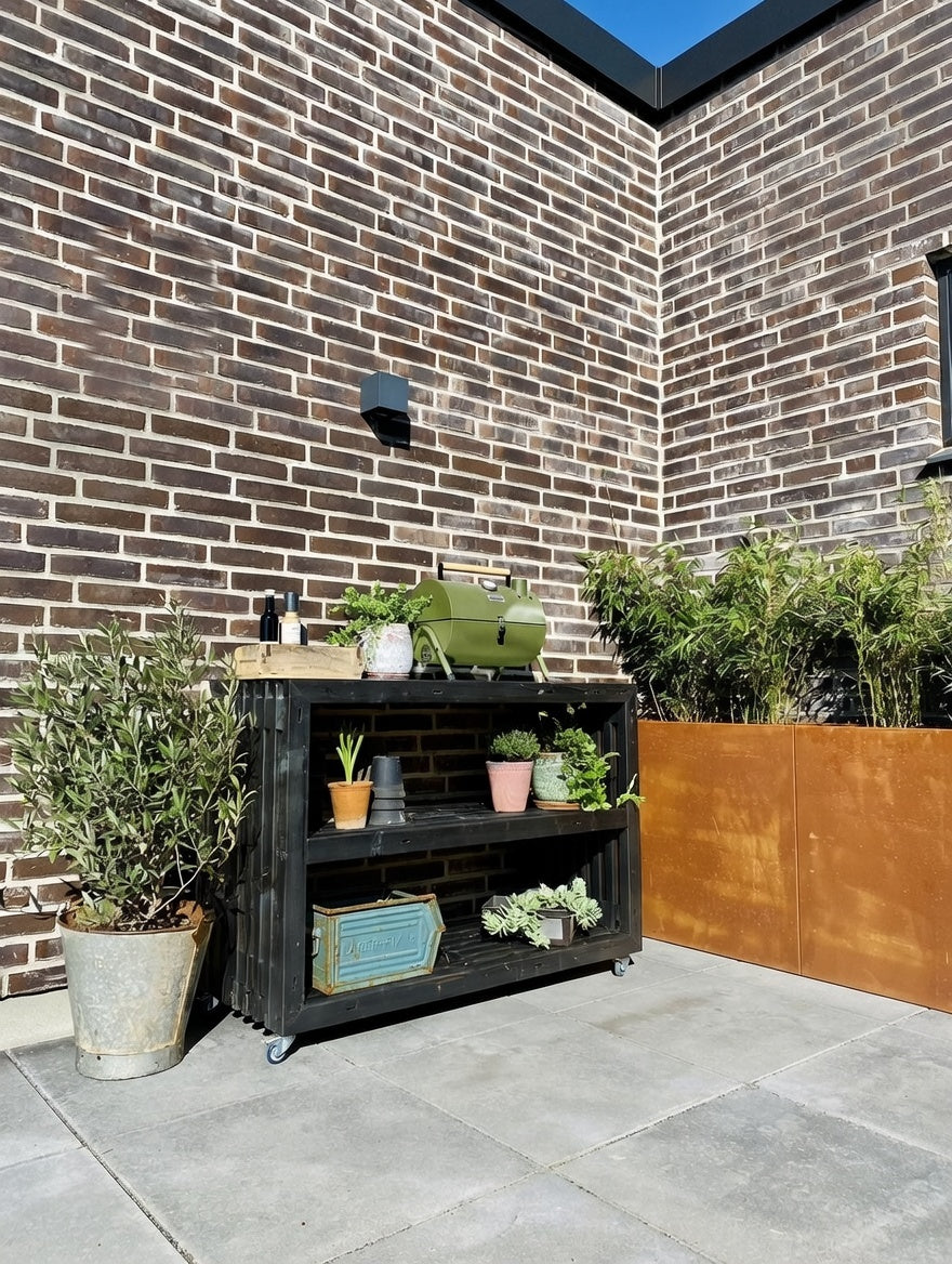 Vores topplade er lavet af varmgalvaniseret stål, et ekstra modstandsdygtigt materiale, der giver dit grillbord en rå og industriel finish. Pladerne stammer fra en dansk producent af ventilationsløsninger, så der kan være mindre brugsspor som overfladiske ridser.