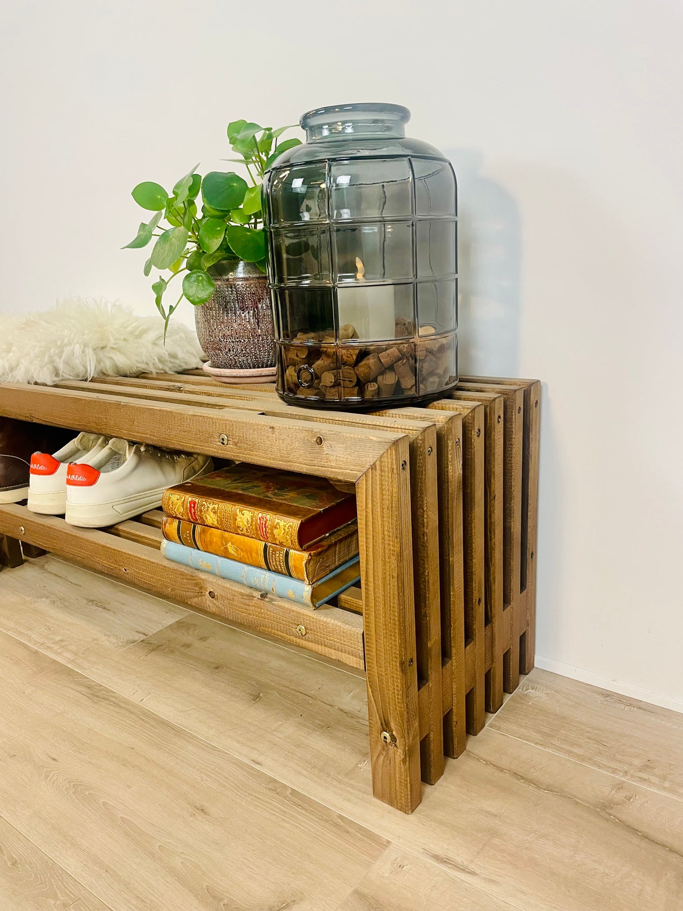 Da traller er lavet af fyrretræ, kan de have knaster, flosser, mindre hak, rester af harpiks, da de som udgangspunkt er produceret til byggeindustrien. Vi mener at dette giver møblet kant og charme.