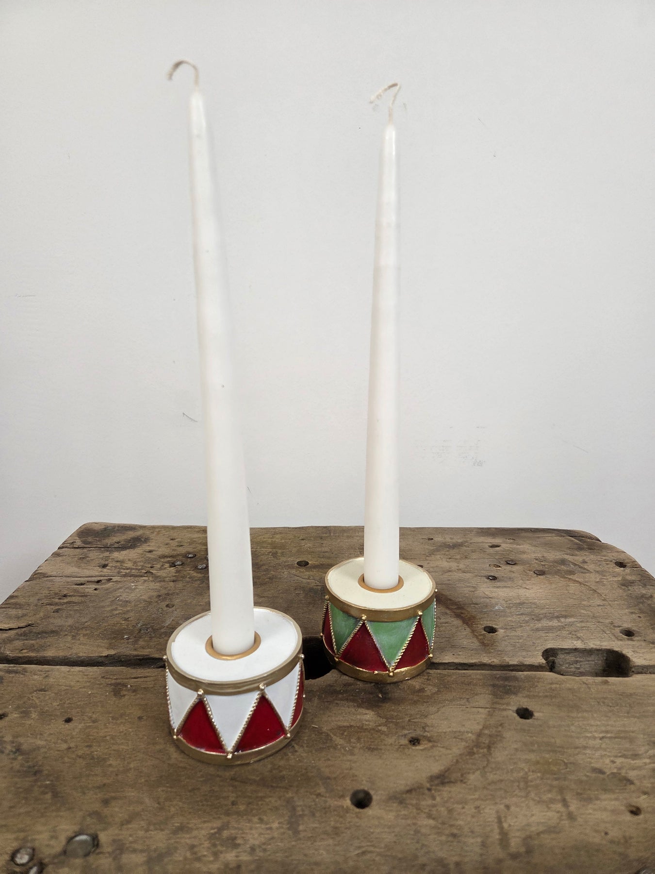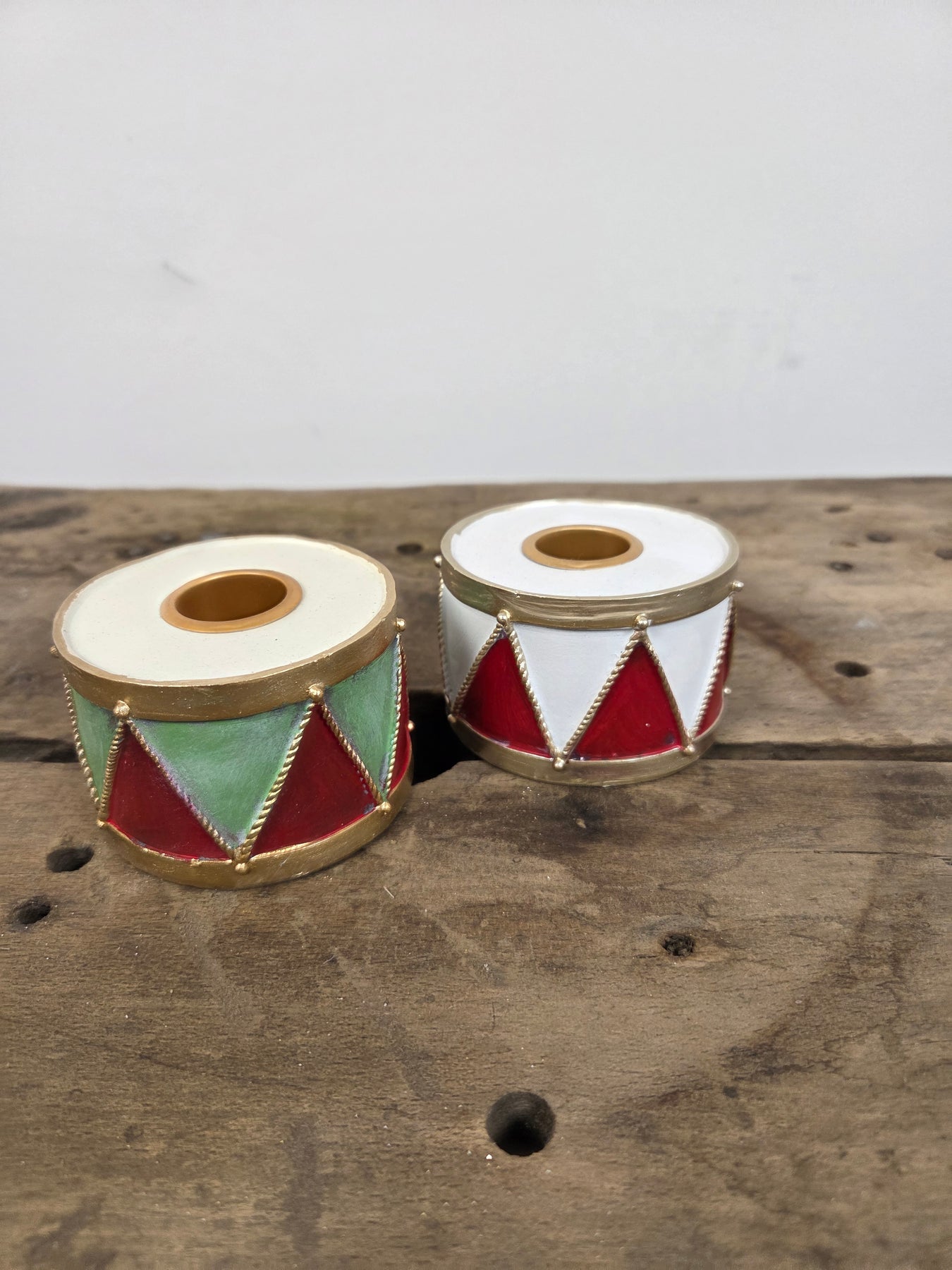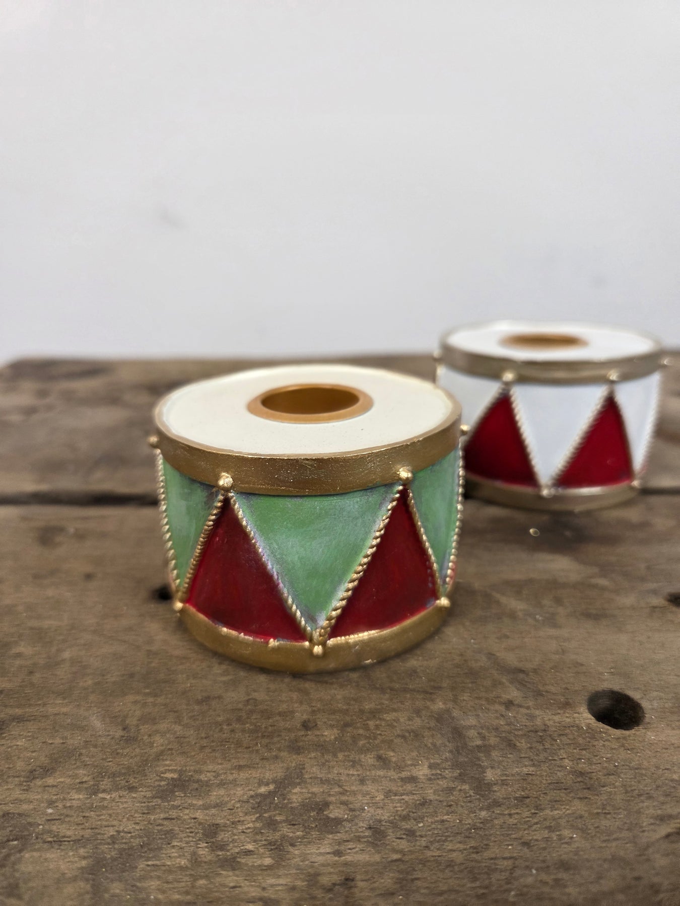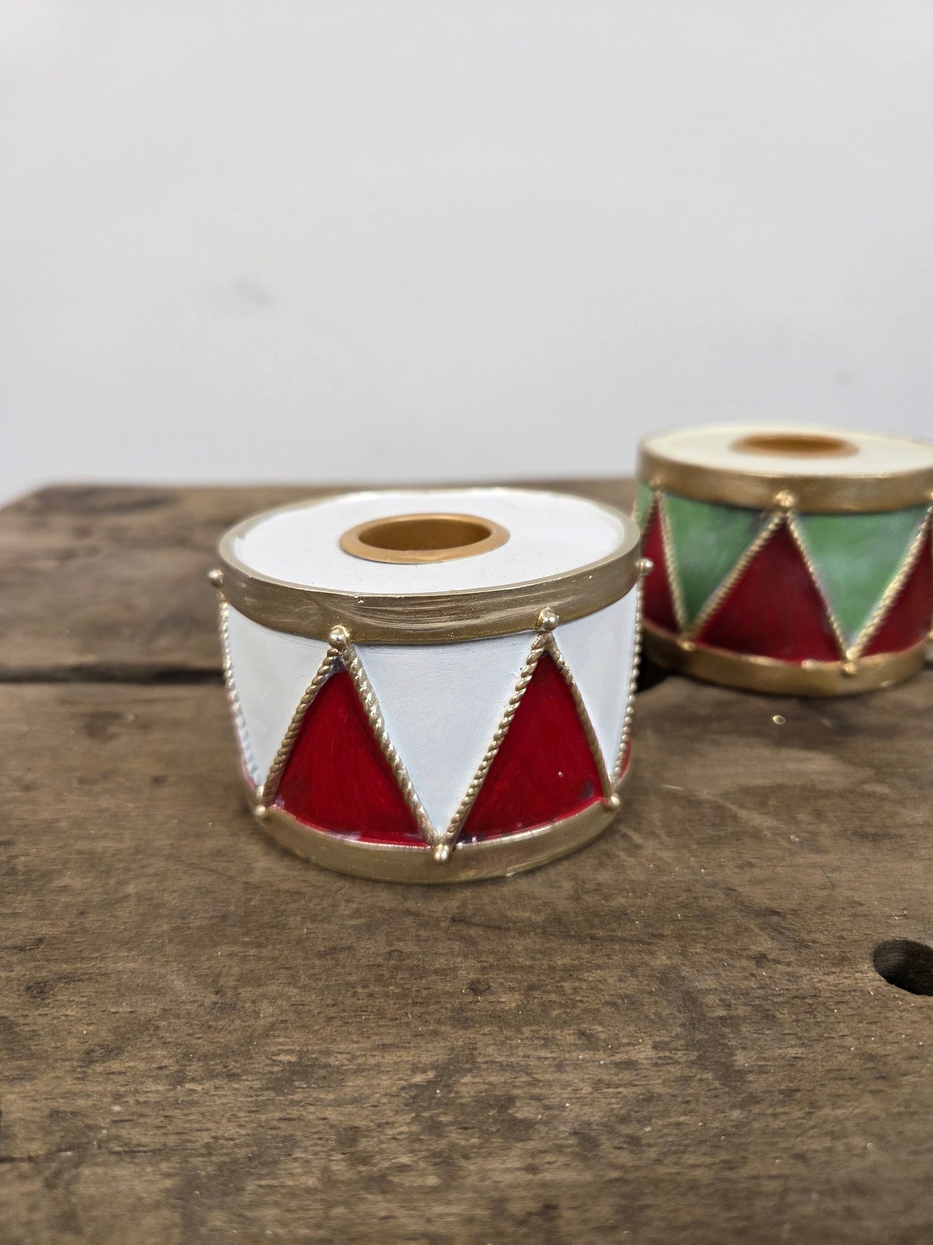 Disse elegante Tromme Lysestage Juledekorationer måler 5 cm i højden og 7 cm i diameter, perfekt til at skabe en varm juleatmosfære. Tilgængelige i 2 farver – grøn/rød og hvid/rød. Med deres kompakte design tilføjer de en hyggelig og traditionel touch til din indretning i stuen eller entreen!