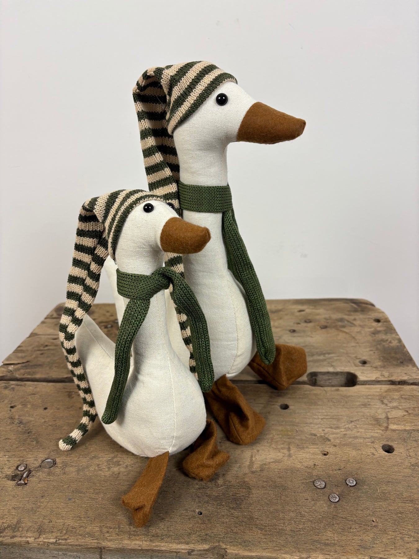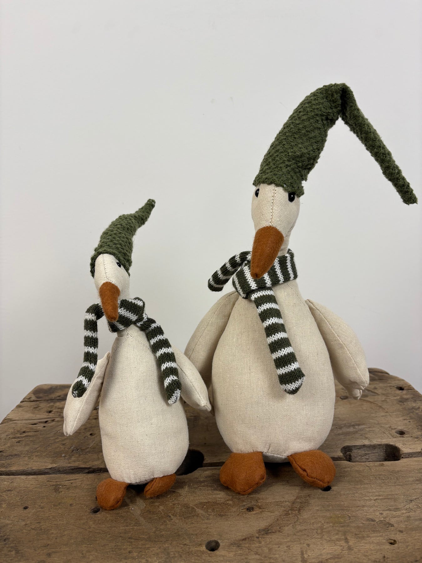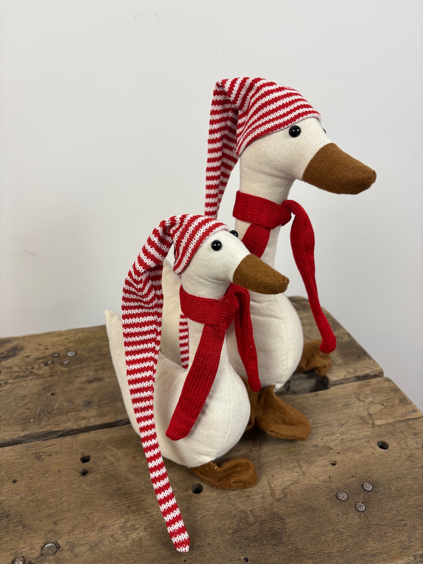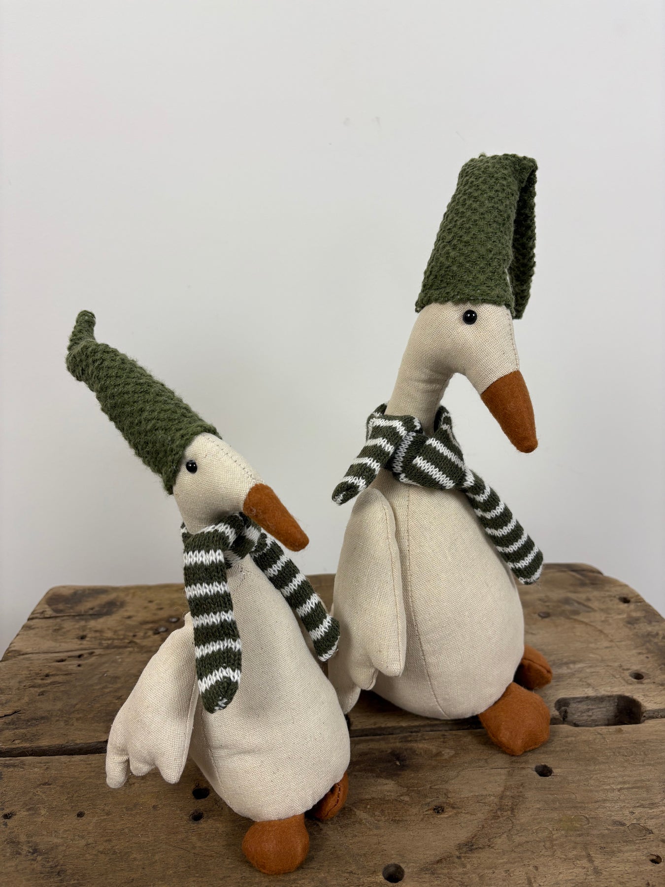 Disse charmerende Juleænder med Hue findes i to størrelser. Perfekt til at bringe sjov og festlig stemning til din jul. Med deres festlige huer og elegante design er de ideelle til at pynte bordet, hylden eller som en iøjnefaldende del af juleindretningen. Skab en hyggelig og unik julestemning i stuen eller entreen med disse søde ænder i juletiden!
