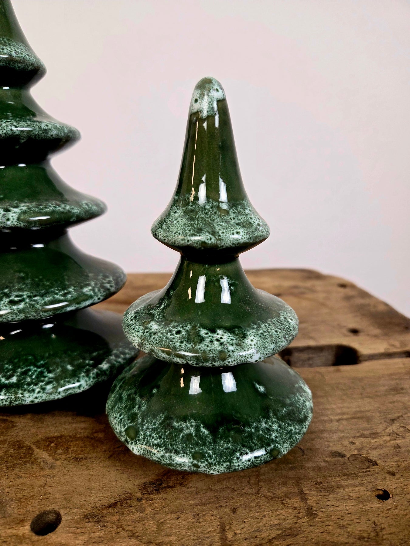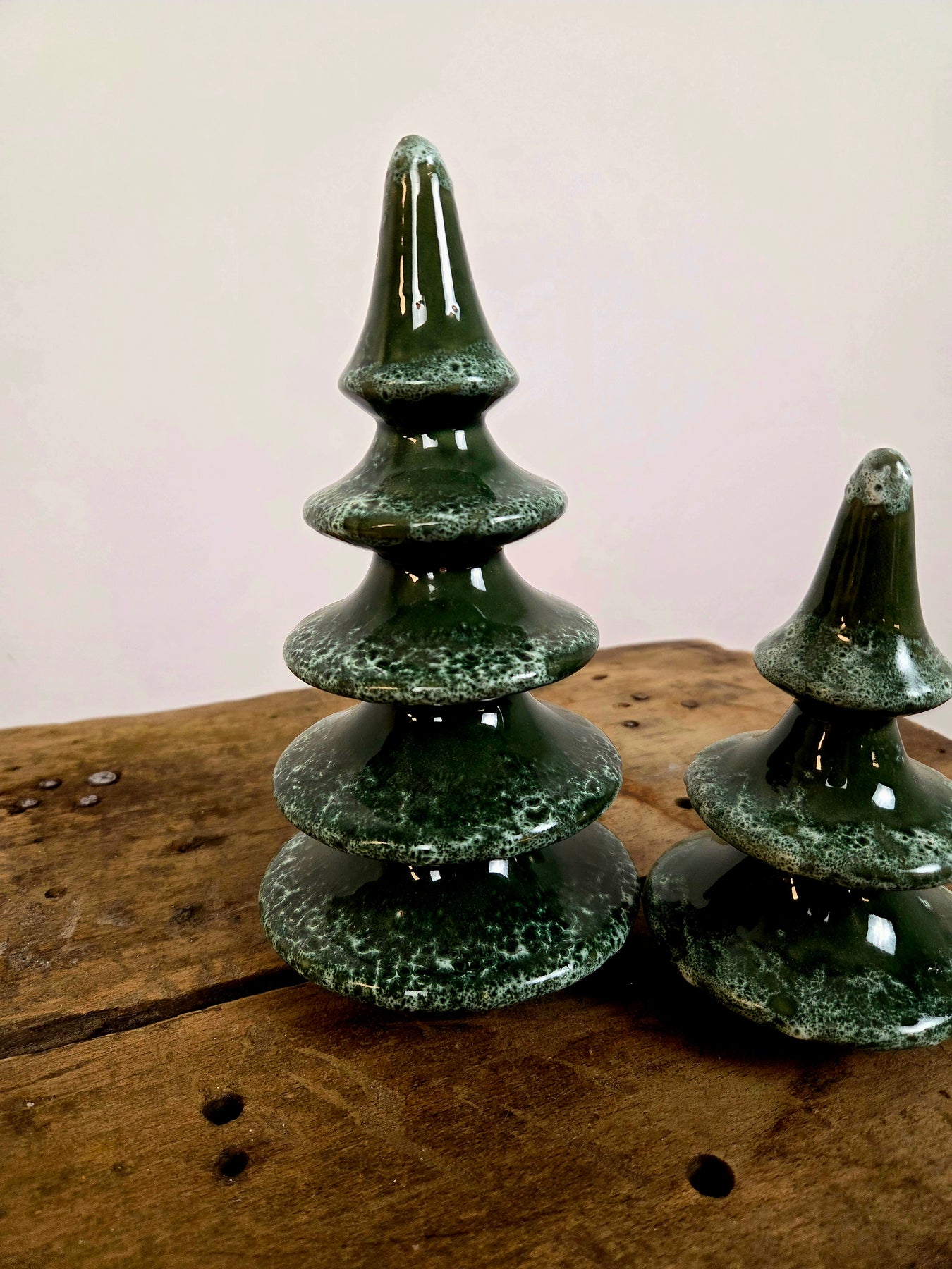 Disse smukke keramiske juletræer er den perfekte måde at tilføje en naturlig og elegant julestemning til dit hjem. Træerne kommer i flere forskellige størrelser – fra ca. 10 cm til 25 cm høje – og nuancer af grøn, der varierer fra mørk skovgrøn til lysere toner, så du kan mixe og matche til din indretning. Placer dem på hylden, bordet, i vindueskarmen eller som en del af en større julearrangement – de er robuste, tidløse og holder sig smukke år efter år. Ideelle til både traditionel og minimalistisk julpynt, vil disse træer bringe ro og hygge ind i højtiden og være en favorit blandt familie og gæster!