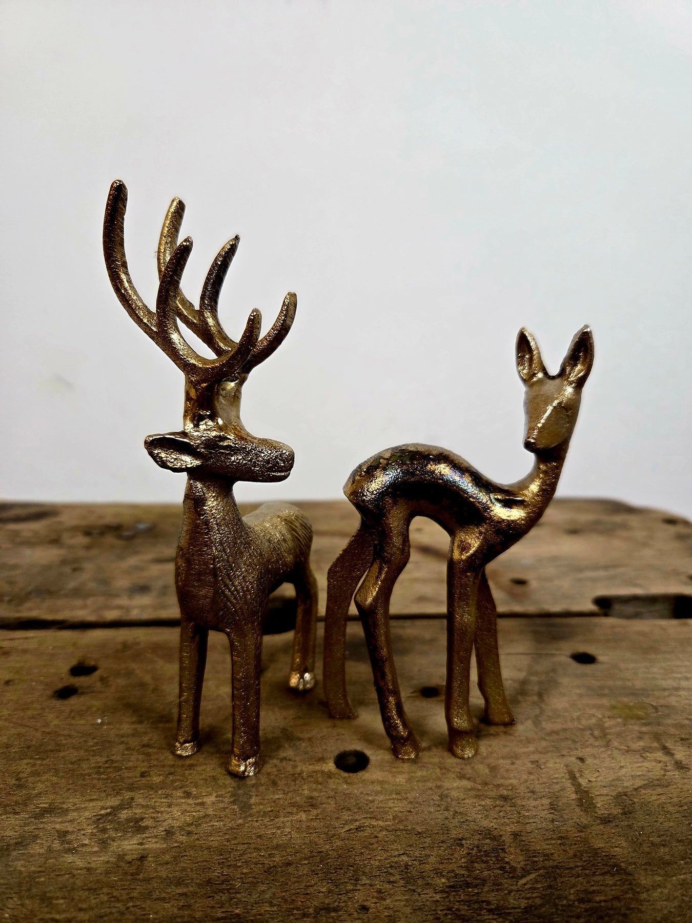 Disse elegante messing-hjorte er det perfekte sæt til at tilføje en klassisk og naturlig julestemning til dit hjem. Fremstillet i holdbart messing med en gylden, patineret finish, der giver et vintage og rustikt udtryk – den ene er en stolt hjort med imponerende gevir, mens den anden er et kid uden gevir, begge med fine detaljer i kroppen og stillingen. Med højder på ca. 13-17 cm passer de perfekt på hylden, bordet, i vindueskarmen eller som en del af en større julearrangement. Ideelle til både traditionel og moderne indretning, vil disse figurer bringe varme og elegance ind i højtiden og være en tidløs favorit, der holder sig smuk år efter år!