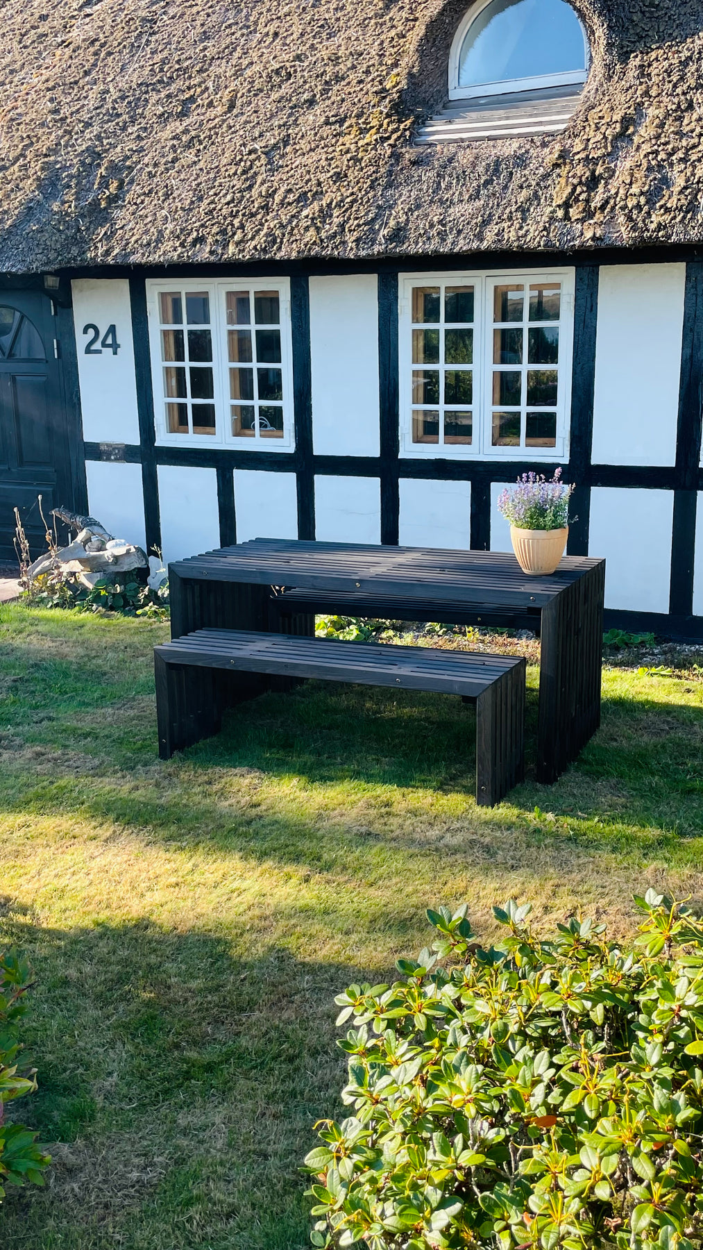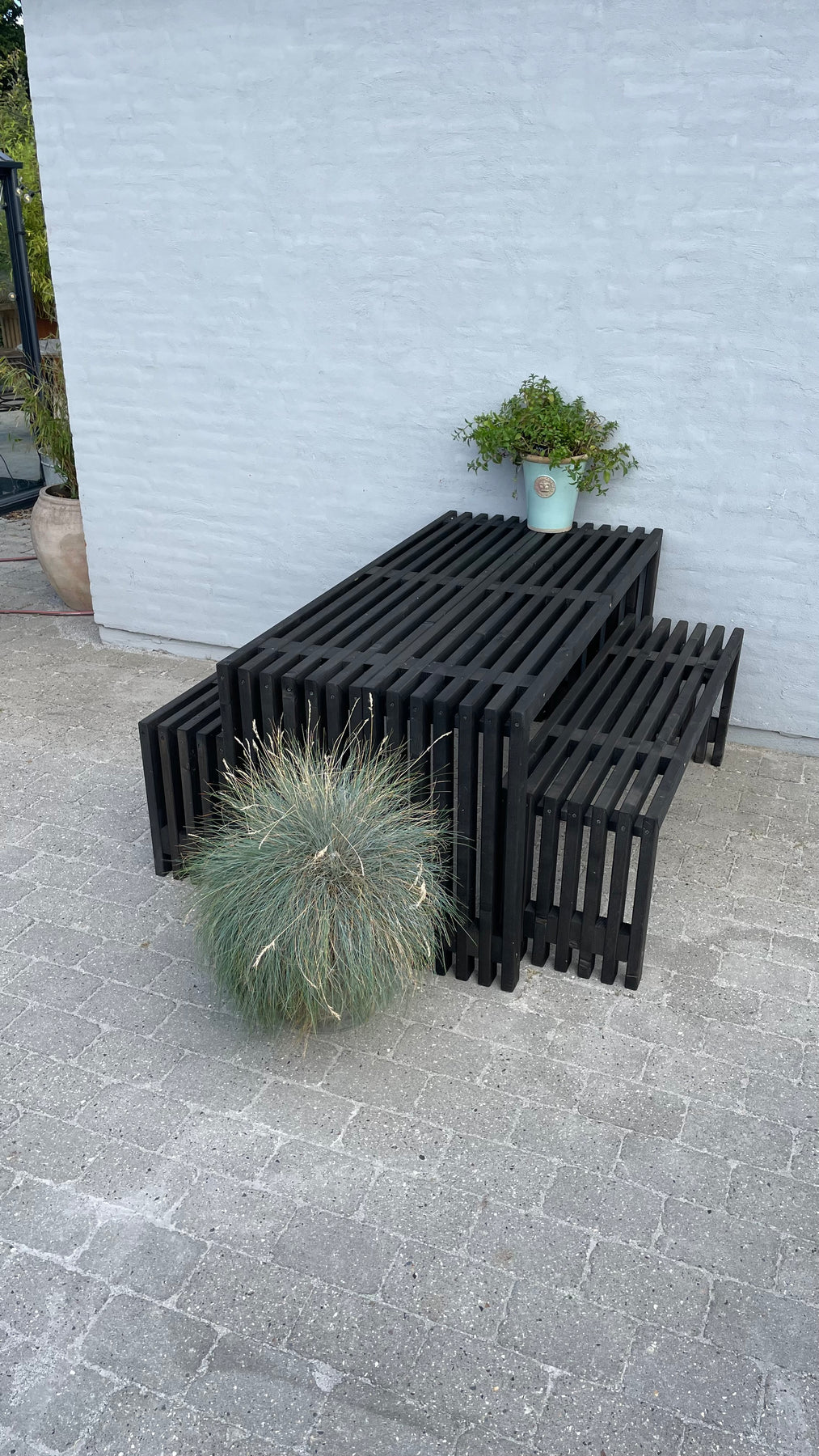 Tralle bord-bænkesæt – skaber en unik stemning og et rustikt touch i haven eller på terrassen. Længden referer til bordets længde. et bord på 160 cm har to bænke der er 137 cm lange og et bord på 215 cm har to bænke der hver er 195 cm lange.