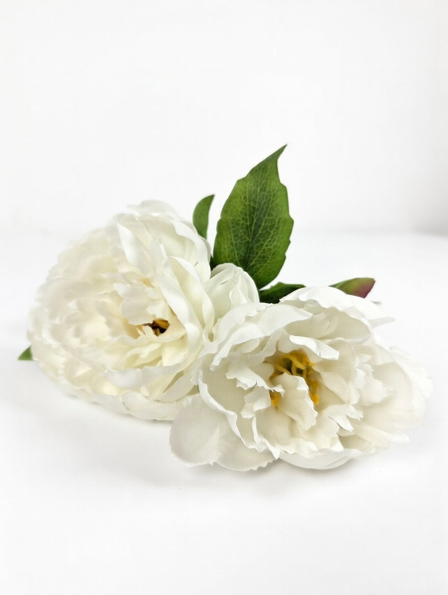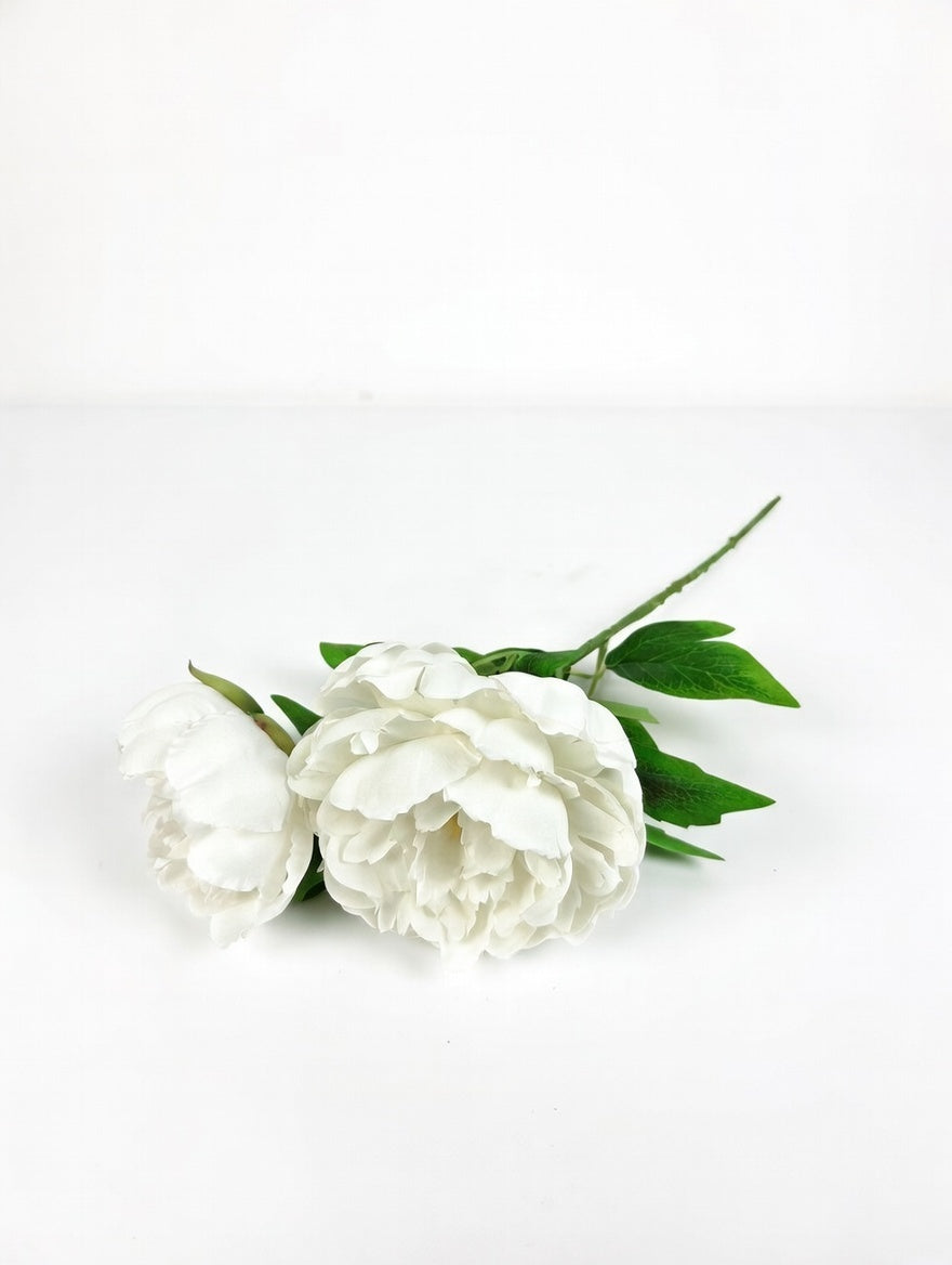 Oplev den tidløse elegance af en klassisk hvid pæon – fuld, luftig og romantisk. De store, bløde kronblade i rent hvidt med subtile grønne blade skaber et luksuriøst og feminint udtryk. Perfekt i en høj vase alene for et dramatisk statement, eller blandet med andre blomster for en drømmende buket. Naturtro, 100 % vedligeholdelsesfri og altid smuk – året rundt.