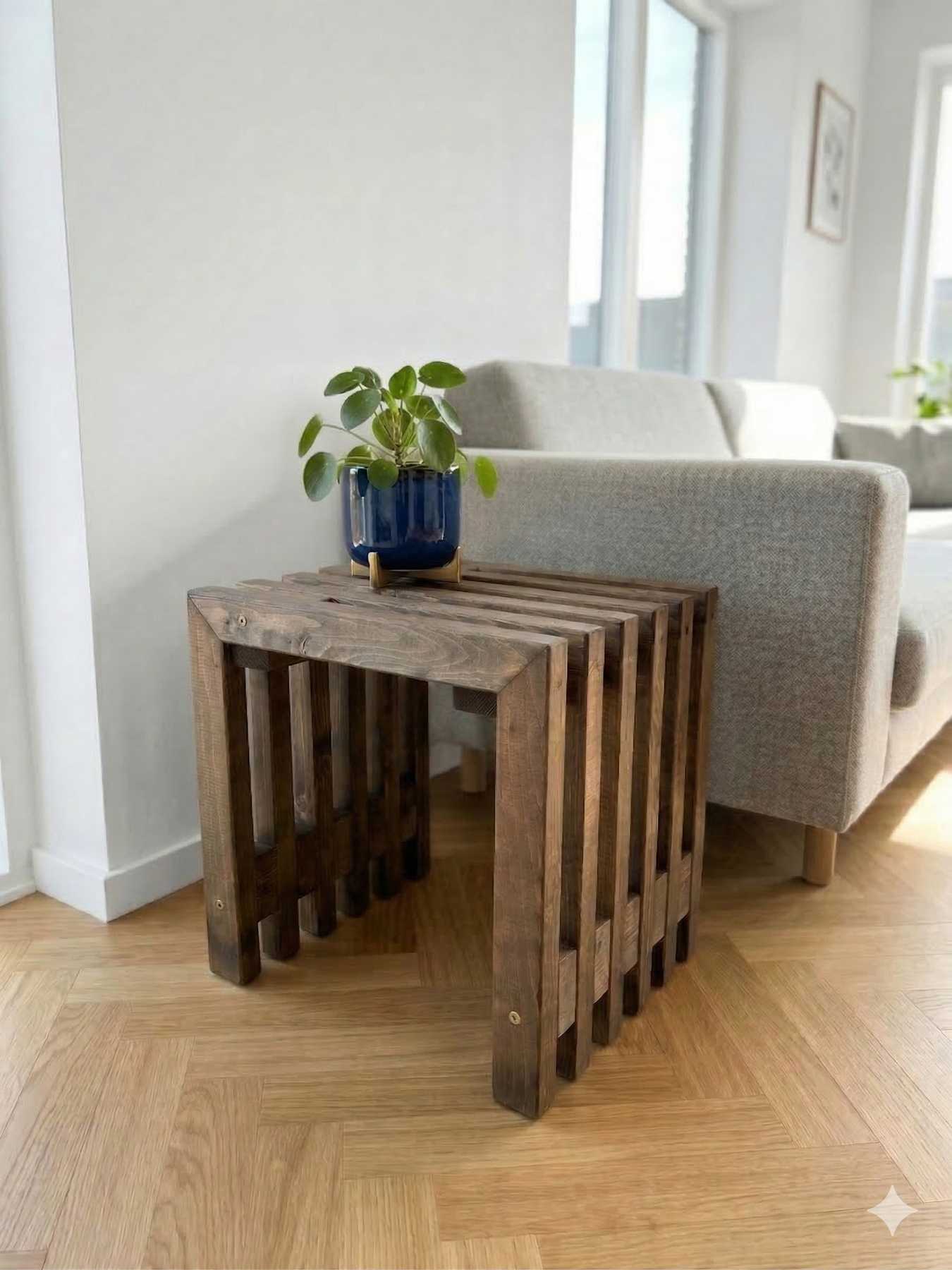 Da traller er lavet af fyrretræ, kan de have knaster, flosser, mindre hak, rester af harpiks, da de som udgangspunkt er produceret til byggeindustrien. Vi mener at dette giver møblet kant og charme.