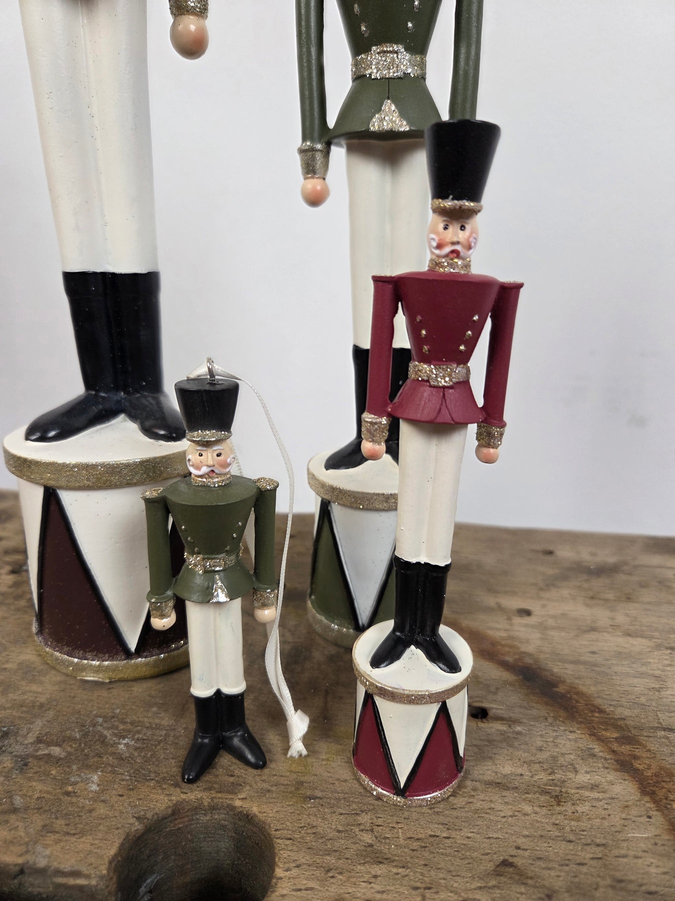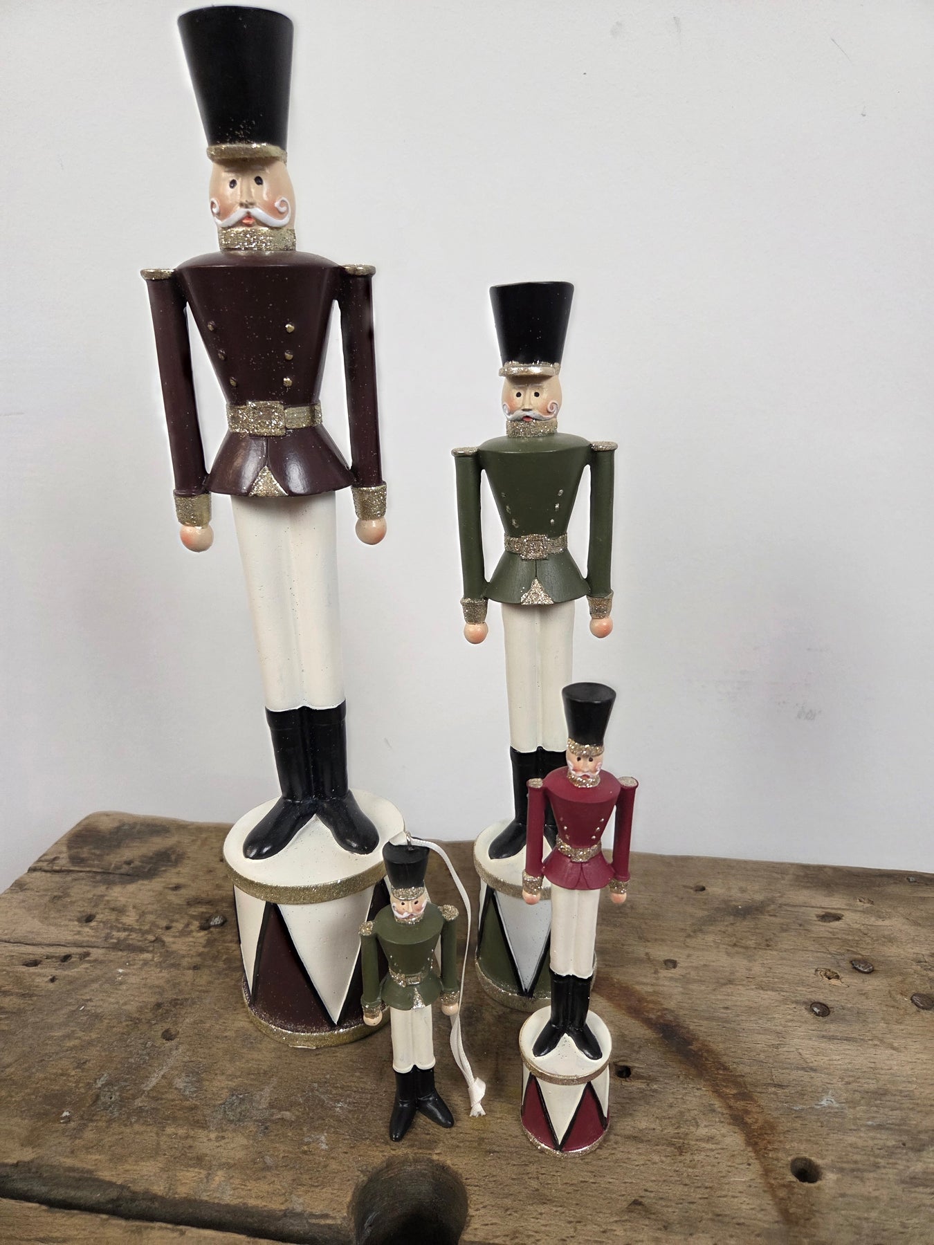 Disse charmerende Tin-Soldat Juledekorationer bringer nostalgisk julestemning ind i dit hjem. Tilgængelige i 3 forskellige farver og 4 forskellige størrelser, herunder en lille ornamentversion på mindst størrelse, der kan hænge på juletræet. Perfekte til at pynte bordet, hylden eller træet, skaber de en festlig og traditionel atmosfære i stuen eller entreen. Pynt op og lad tin-soldaterne stå vagt i juletiden!